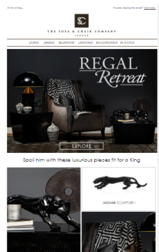 Prabangių klientų pritraukimas Projektas: Prabangios baldų įmonės internetinių pardavimų auginimas, pasitelkiant el. pašto rinkodarą, socialinius tinklus ir spaudą KlientasThe Sofa & Chair Company SprendimaiSkatinti pajamų augimą ir stiprinti prekės ženklo matomumą pasitelkiant rinkodarą ir viešuosius ryšius. RezultataiPer tris mėnesius internetiniai pardavimai išaugo 35%, el. paštas, socialiniai tinklai ir spauda tapo 5 pagrindiniais pajamų šaltiniais. VertėPadidėjusi prekės ženklo vertė per pranešimus spaudoje ir žurnalų fotosesijas, atspindinčias prabangių namų projektus. 35%pardavimų internetu augimas dėl naujienlaiškių (QoQ) 86%Organinis Instagram augimas (YoY) £ 25KVertės užsakymas iš socialinių tinklų